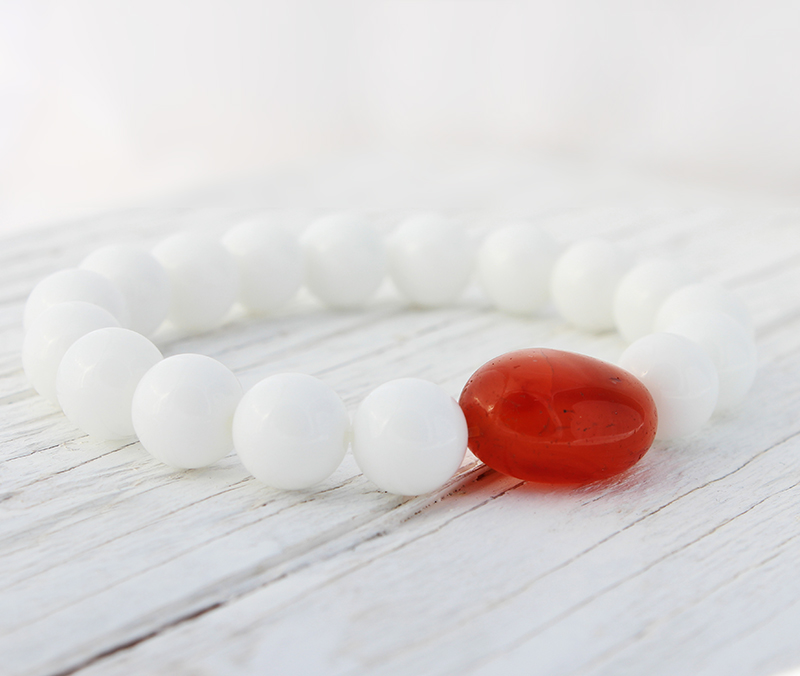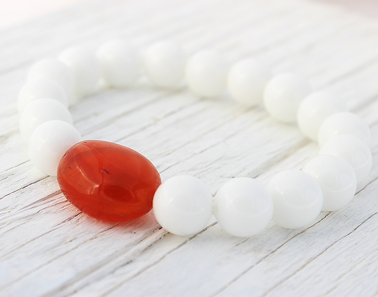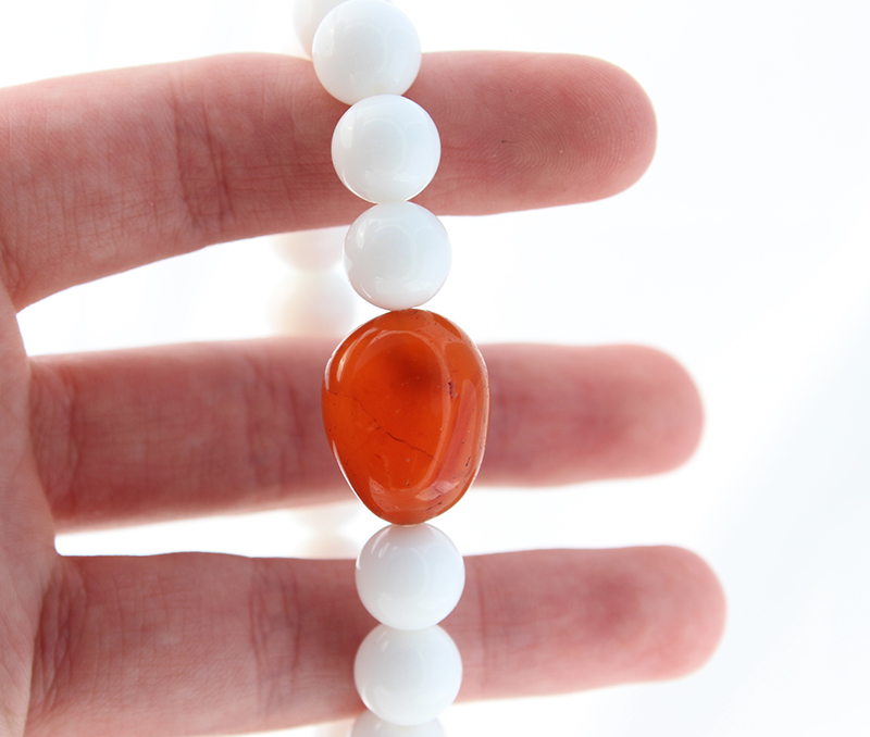 Fresh White Alabaster resembles the bright, soft summer clouds / Featuring a stunning focal Orange Corenalian bead.