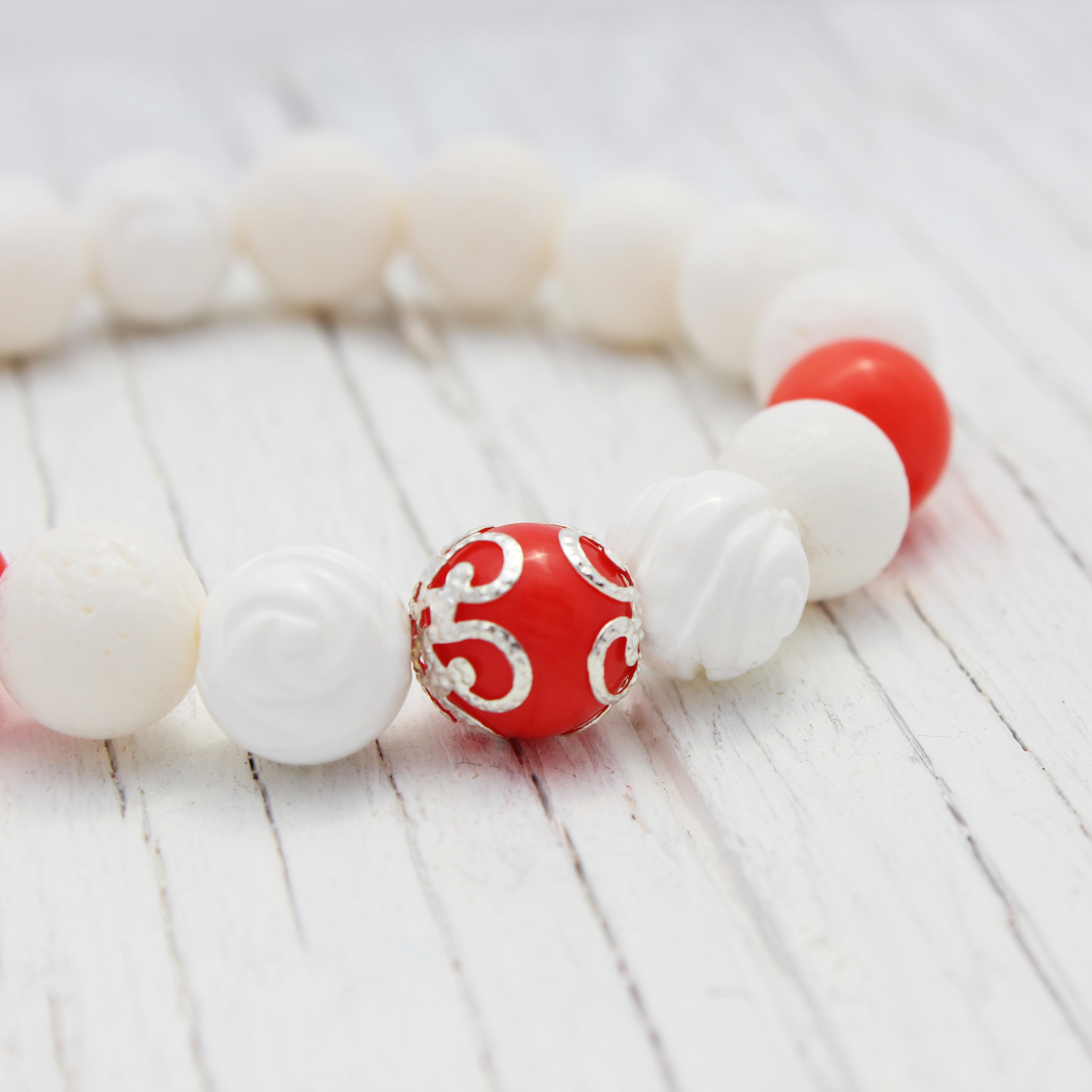 These gorgeous dyed bamboo orange coral beads are complimented natural white coral and floral carved coral.